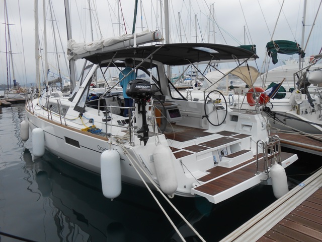Arrivée à Hyères à 20h00 ou notre bateau nous attendait. Un Oceanis 45 de chez Beneteau baptisé "Blanc Bleu II"